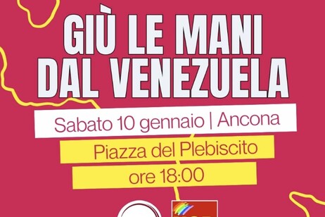 Un atto di protesta contro le violazioni del diritto internazionale e le aggressioni subite dalla Repubblica Bolivariana del Venezuela si terrà ad Ancona, sabato 10 gennaio alle ore 18:00, in Piazza del Plebiscito.