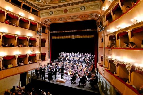 La serata si è aperta con una cantata di Lauro Rossi, compositore marchigiano, per solisti, coro e orchestra, magistralmente diretta da Lamberto Lugli.