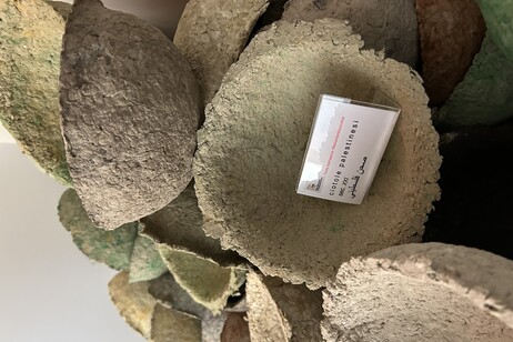 Si tratta di una ricostruzione immaginaria, musealizzata, che confronta ceramiche palestinesi originali, testimoni silenziose di una storia millenaria, con manufatti ricostruiti dall’artista, segnati da fiamme virtuali, corrose dal tempo e dalla violenza.