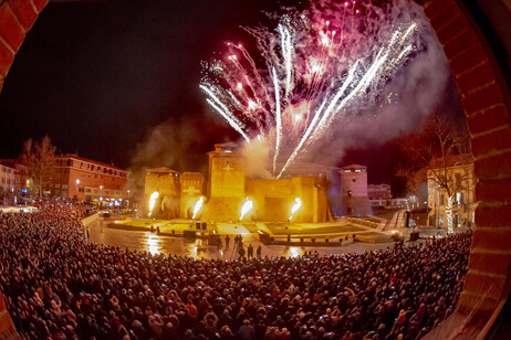 Ferrara, città d’arte e storia, offrirà uno spettacolo di grande impatto visivo con “L’Incendio”, una coreografia di luci, colori e fuochi d’artificio che illumineranno il Castello Estense, esaltandone la maestosità.