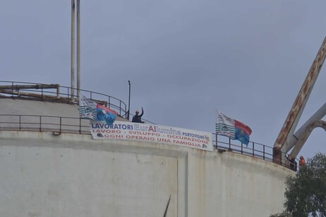 La vertenza di Eurallumina a Portovesme si trascina, alimentata dalla determinazione di quattro operai in presidio aereo, appollaiati a quaranta metri d’altezza sul silo aziendale.