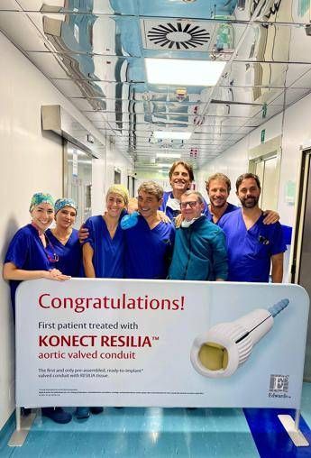 (Adnkronos) – E' stato eseguito il 24 luglio allo European Hospital di Roma, su 70enne con aneurisma dell'aorta e valvola aortica compromessa, il primo impianto in Europa di un condotto aortico pre-assemblato che ha permesso la sostituzione combinata di valvola aortica, radice aortica e aorta discendente. Konect Resilia è il nome della nuova tecnica, "una procedura altamente innovativa che rappresenta un importante passo avanti nella cardiochirurgia complessa", progettata da Edwards Lifescience con l'obiettivo di "migliorare la durata dell'impianto e ridurre i rischi per il paziente". Lo annuncia il gruppo Garofalo Health Care (Ghc), a cui fa capo lo European Hospital. In sala operatoria l'équipe di Ruggero De Paulis, dal 2006 direttore del Dipartimento di Cardiochirurgia della struttura, "riconosciuto a livello internazionale come una delle eccellenze nella chirurgia cardiovascolare", ricordano dal gruppo. Il dispositivo Konect Resilia, prima soluzione pronta per l'impianto disponibile in Europa per le procedure bio-Bentall, viene descritto come un condotto aortico avanzato, già assemblato, che semplifica la sostituzione completa della radice aortica con valvola biologica integrata. Il device di Edwards Lifescience utilizza il tessuto Resilia, una tecnologia brevettata che preserva l'integrità del tessuto biologico, e un condotto aortico concepito proprio in European Hospital da De Paulis più di 20 anni fa, spiega una nota. La soluzione preconfezionata adesso disponibile – si legge – consente una riduzione dei tempi operatori e una semplificazione della procedura chirurgica, particolarmente vantaggiosa in situazioni di urgenza o su pazienti ad alto rischio. Questa tecnologia consente di bypassare completamente la valvola aortica malata, ripristinando il corretto flusso ematico dal ventricolo sinistro all'aorta, in pazienti in cui la sostituzione valvolare standard non è praticabile. Con questo intervento lo European Hospital di Roma si conferma centro di riferimento europeo per l'adozione di tecnologie cardiochirurgiche all'avanguardia, sottolinea Ghc. Secondo il rapporto Prevale 2025 (Programma regionale di valutazione degli esiti) – rimarca il gruppo – lo European Hospital è al secondo posto nel Lazio per basso tasso di mortalità a 30 giorni da interventi di valvuloplastica o sostituzione delle valvole cardiache, oltre a essere al secondo posto per volume di ricoveri per il trattamento delle patologie alle valvole cardiache. "Si è trattato di un intervento particolarmente delicato – afferma De Paulis – poiché è stato necessario trattare un aneurisma e sostituire una protesi valvolare malfunzionante, in un paziente particolarmente fragile. La possibilità di impiantare un condotto aortico già assemblato altamente innovativo ha permesso che l'operazione si svolgesse rapidamente per ridurre i tempi operatori e senza criticità, e ne sono particolarmente soddisfatto". Commenta Maria Laura Garofalo, amministratore delegato del gruppo Garofalo Health Care: "Questo nuovo primato rappresenta un risultato di grande valore non solo per lo European Hospital, ma per l'intero gruppo Ghc. L'adozione della tecnologia Konect Resilia conferma la nostra vocazione all'innovazione clinica e al continuo miglioramento dell'offerta sanitaria. E' un passo decisivo all'interno del più ampio progetto di sviluppo che stiamo portando avanti sull'asse European Hospital-Aurelia Hospital, con l'obiettivo di creare un polo di assoluta eccellenza a livello internazionale". —salutewebinfo@adnkronos.com (Web Info)
