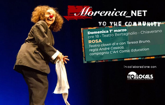 Domenica 1° marzo alle ore 18 al Teatro Bertagnolio di Chiaverano sale in scena la Compagnia toscana Teatro C’Art e l’attrice Teresa Bruno a presentare ROSA, uno show dal ritmo serrato e sempre sorprendente, intriso di un linguaggio non verbale, in cui si alternano scivolate e cadute clownesche a voci urlate in diverse lingue, passi di flamenco imbizzarriti e equilibri precari, improvvisazioni e poesia.