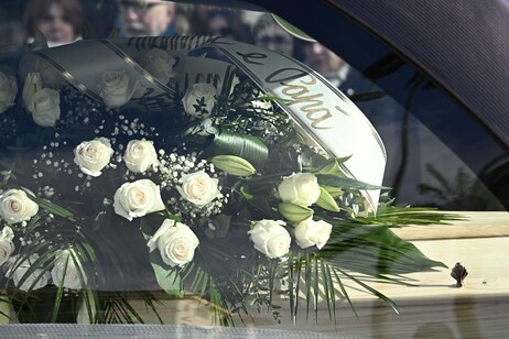 Un velo di fiori bianchi, una composizione floreale a forma di cuore recante la scritta “Gli amici di sempre”, testimonianze tangibili di affetto e legami.