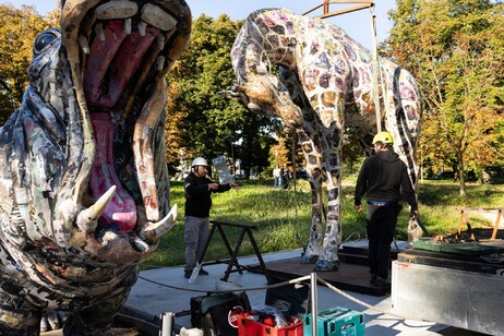 L’opera, un imponente ippopotamo in cartapesta, fa parte della suggestiva serie *La fragilità del futuro*, un ciclo di quattro animali che il celebre artista ha concepito come riflessioni tangibili sulle sfide ambientali e sociali del nostro tempo.