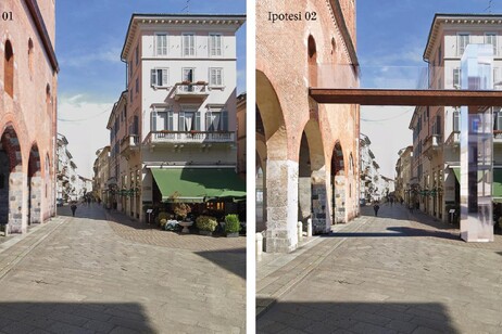 La seconda proposta, più audace e innovativa, prevede invece un ascensore esterno, separato dal corpo principale dell’Arengario.