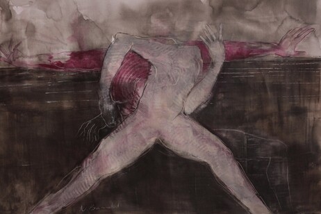 Le tele di grandi dimensioni si affiancano a disegni e studi su carta di formato più contenuto, offrendo una visione intima del processo creativo dell’artista.