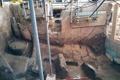 Gli scavi, finanziati attraverso la ‘Campagna nazionale di scavi a Pompei e in altri parchi nazionali’ del 2024, hanno portato alla luce, in un ambiente destinato all’approvvigionamento del primo piano, anfore contenenti fave e un corno da campo ricco di frutta.