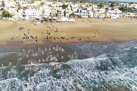 Il vento di scirocco, pungente e insistente, e la temperatura dell’acqua, decisamente frizzante, non hanno scoraggiato nessuno.