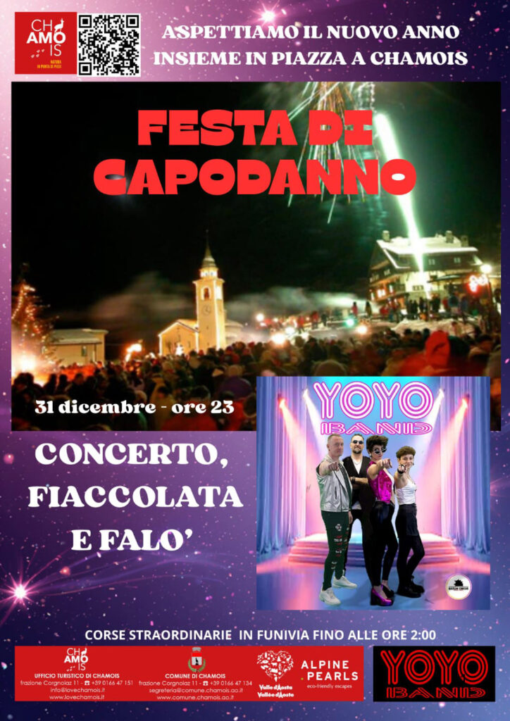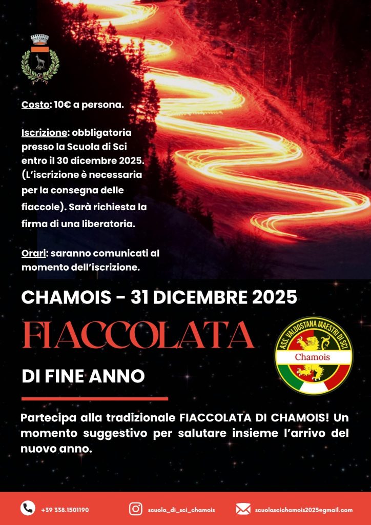 Non mancheranno il tradizionale falò, per dare rilievo all’atmosfera intima e calorosa di Chamois, accompagnata da panettone, vin brulé e cioccolata calda.