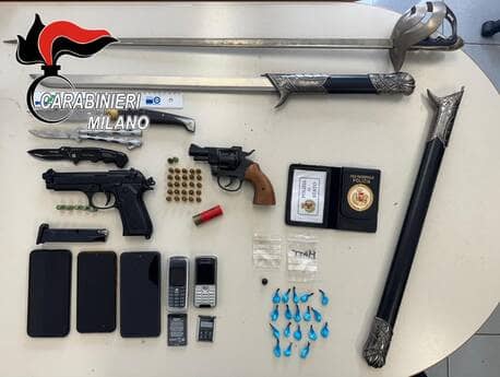 L’elenco delle armi illegali non si è fermato qui: sono state scoperte una cartuccia di calibro 12 non denunciata, un portatessera contraffatto dell’Associazione Nazionale Polizia di Stato, completo di placca distintiva alterata, e due pistole a salve, depotenziate e prive del necessario tappo rosso di sicurezza, accompagnate da relativo munizionamento.