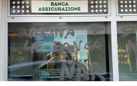 A Castelnuovo Scrivia, la filiale di Intesa Sanpaolo è stata oggetto di un’azione di danneggiamento che ha visto la vetrata imbrattata con messaggi esplicitamente rivolti al mondo bancario e finanziario: “Rapina la banca”, “Strozzina”.
