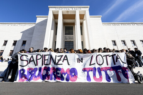 Un’onda di voci e il tintinnio delle chiavi hanno increspato la facciata del Rettorato dell’Università La Sapienza, in una manifestazione che ha visto la partecipazione di un centinaio di giovani.