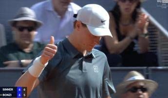 Nervosismo per Jannik Sinner a Madrid. Oggi, venerdì 24 aprile, il tennista azzurro esordisce nel Masters 1000 spagnolo contro il francese Benjamin Bonzi, in una partita più complicata del previsto dove il numero 1 del mondo non è riuscito a esprimere al meglio il suo tennis, cadendo in momenti di vera e propria frustrazione. Durante il primo set Sinner si è guadagnato ben cinque palle break, non riuscendo però a trasformarne nessuna. Il parziale si è quindi allungato fino al tie break, dove l'azzurro ha avuto un set point sul 6-5, vedendoselo però annullare da Bonzi. La frustrazione di Sinner si è 'scatenata' con un ironico pollice alzato e indirizzato verso il suo angolo, probabilmente in disaccordo con alcune disposizioni tattiche offerte dagli allenatori Simone Vagnozzi e Darren Cahill. Alla fine l'azzurro si è dovuto arrendere ed è stato proprio il francese a conquistare il parziale.