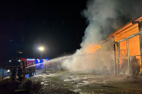 L’intervento dei vigili è reso difficile dalla quantità di fieno impilato, che rende difficoltoso l’accesso alle fiamme e ne ostacola il controllo.