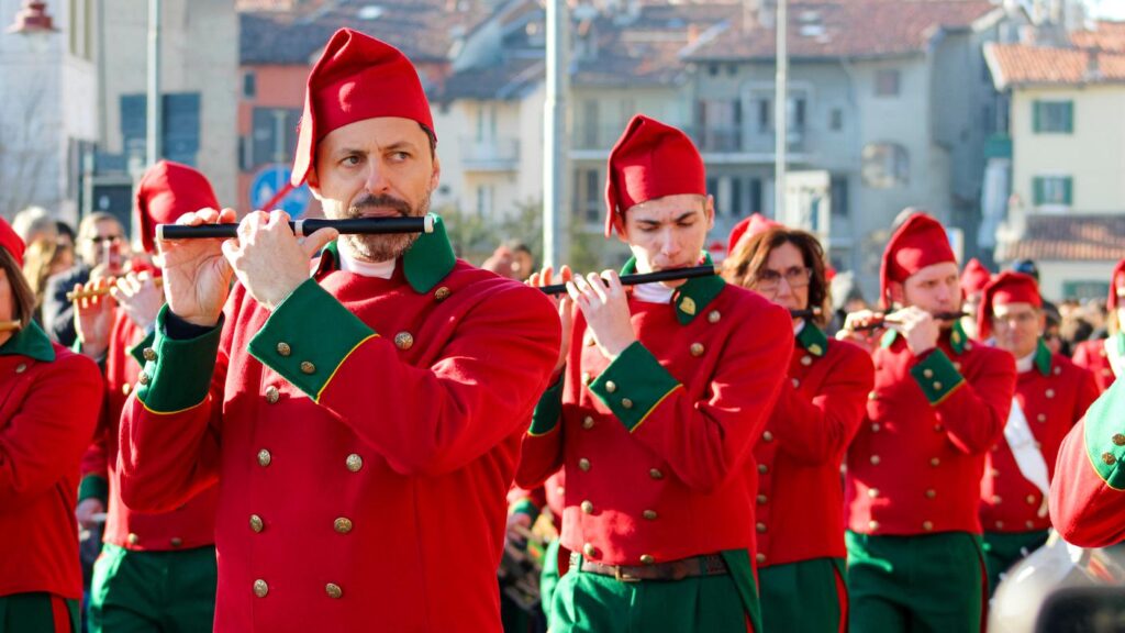 Indossa il berretto frigio (rosso) e cammina senza fretta: Ivrea si racconta meglio così, tra un lancio d’arance, una musica improvvisa e un sorriso condiviso.