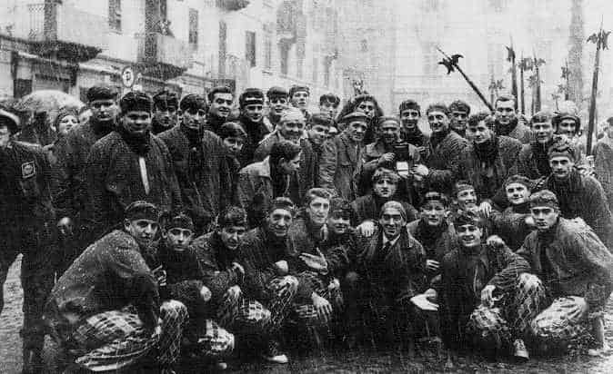 Un cammino iniziato nel 1947, quando un gruppo di amici, uniti dalla passione per il calcio e per la festa cittadina, diede vita alla prima squadra organizzata di aranceri a piedi. A disegnare lo storico stemma – il Picche nero su fondo romboidale bianco – fu Gino Pasteris, disegnatore Olivetti. Quel simbolo, cucito sugli abiti dei primi trenta componenti, accompagnò le prime battaglie combattute soprattutto in piazza di Città.