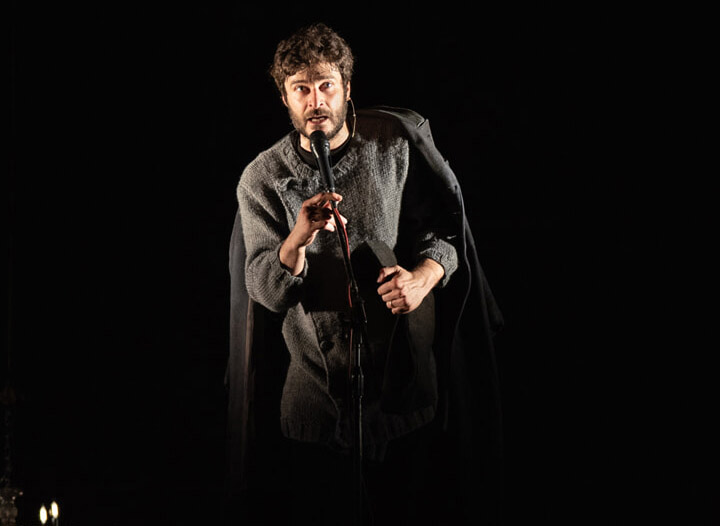 In questo scenario, il testo di Sacco articola un dramma polifonico: da una parte l’eroe la cui assenza è fonte di grandezza, dall’altra il figlio, interpretato da Lino Guanciale, che fatica a trovare un senso alla mancanza del padre, colui che non è solo uomo ma mito, divinità o autorità assoluta.