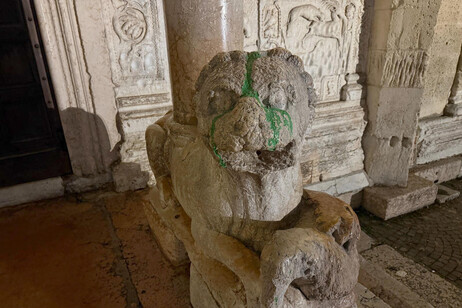 L’atto vandalico ha colpito simboli di rilevanza storica e identitaria per la città: i leoni di pietra, custodi silenziosi all’ingresso della Basilica di San Zeno, uno dei più significativi esempi di architettura romanica veneta, e il monumento dedicato al Bersagliere, figura evocativa del servizio militare e del sacrificio per la patria.