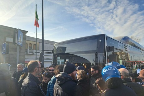 Parallelamente, un numero maggiore di manifestanti si è concentrato all’esterno della stazione ferroviaria, interrompendo il servizio navetta che collega la stazione alla fiera.